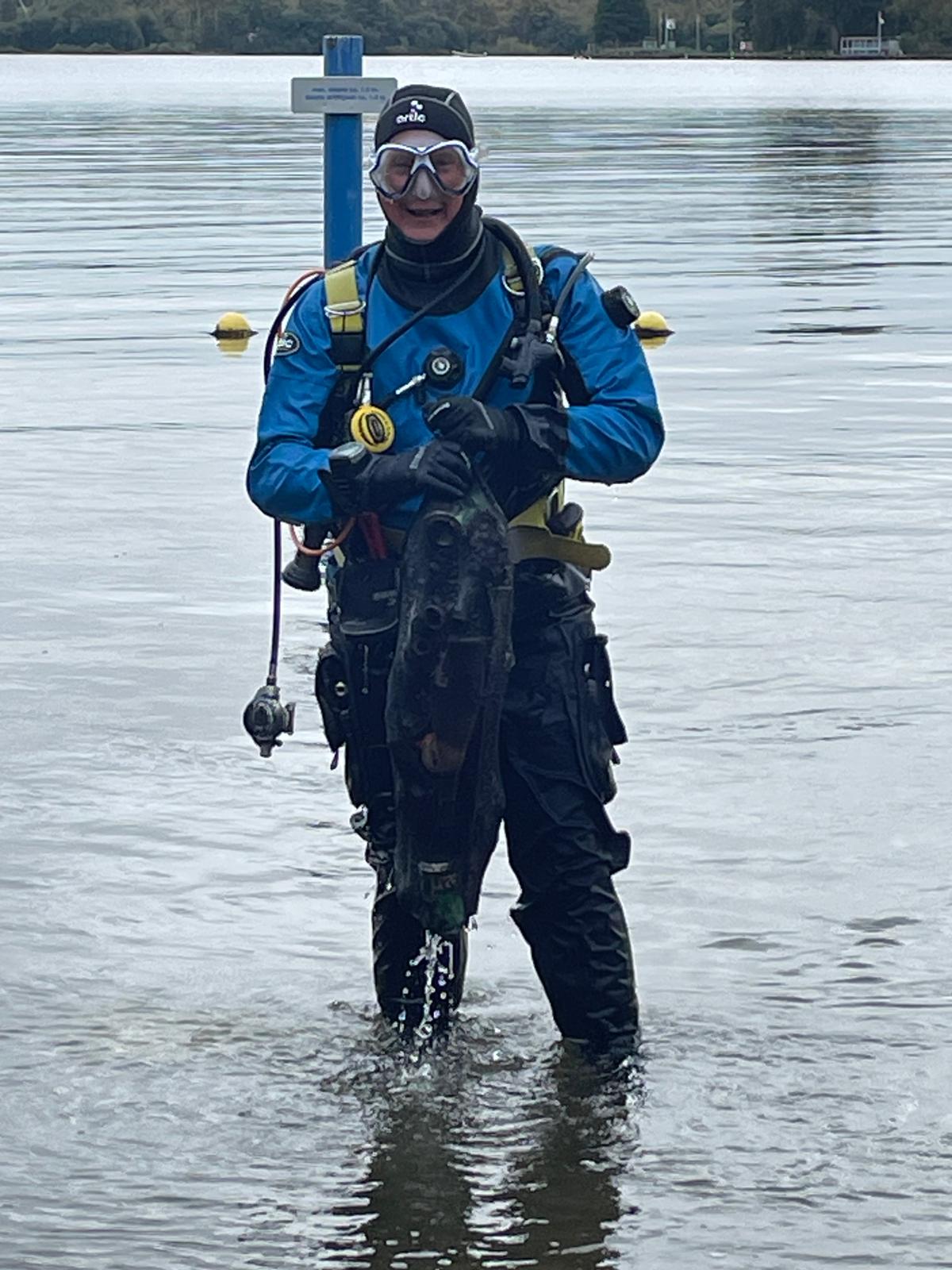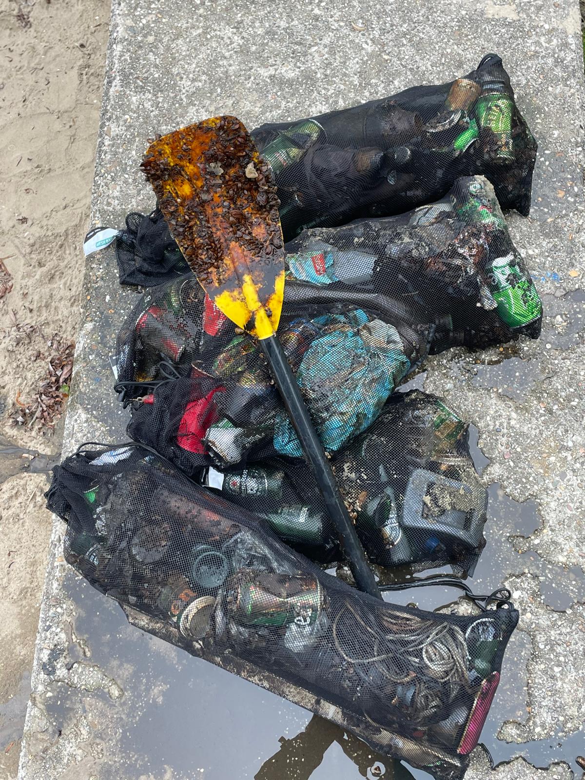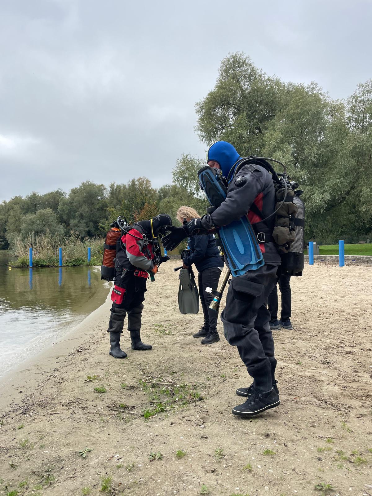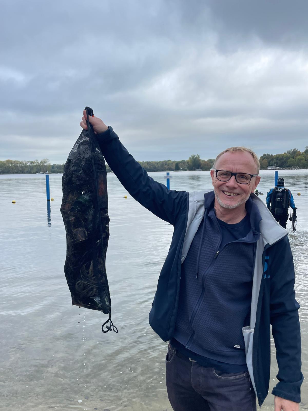 In oktober hebben we met leden van Duikteam Haarlemmermeer een clean-up duik gemaakt vanaf het strandje aan de Nieuwe Meer in Amsterdam. Deze zoetwater plas is heel populair onder recreanten en dat is na een mooie zomer ook  duidelijk te zien is aan de hoeveelheid zwerfafval onder water. Voorzien van verzamelnetjes zijn 10 duikers te water gegaan met de opdracht aan de buddyparen om elk een eigen gedeelte op te zoeken en zoveel mogelijk rotzooi van de bodem te verzamelen. Dat is gelukt want het zicht was goed en er was veel rotzooi te vinden, dus dat was een succesvolle actie. Het resultaat was twee vuilniszakken vol met lege flessen, blikjes, plastic zakken en allerlei andere zooi dat niet onderwater thuis hoort.